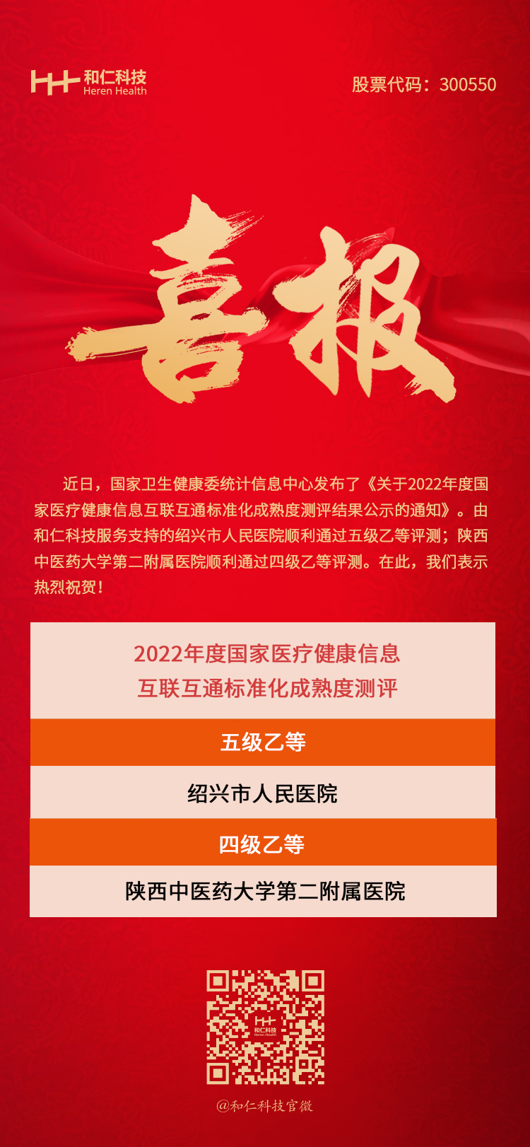 熱烈祝賀和仁科技服務的多家醫院順利通過2022年度國家醫療健康信息互聯互通標準化成熟度測評